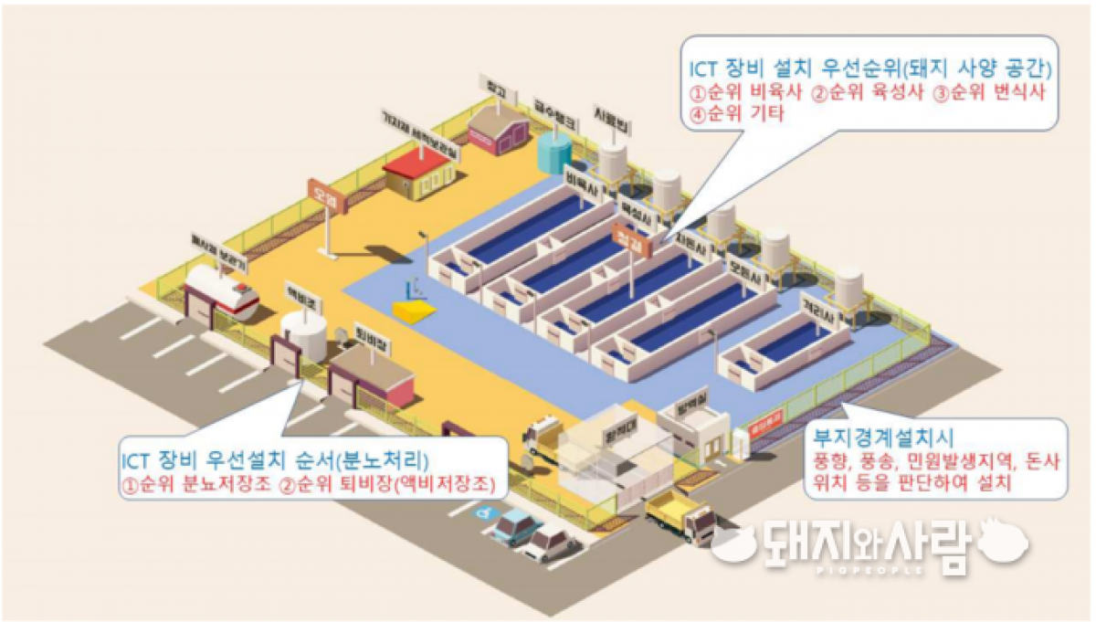 돈사 위치별 ICT 기계·장비 설치 위치 모식도@축산환경관리원