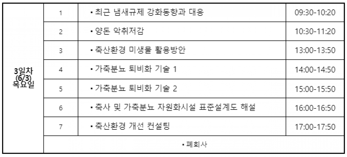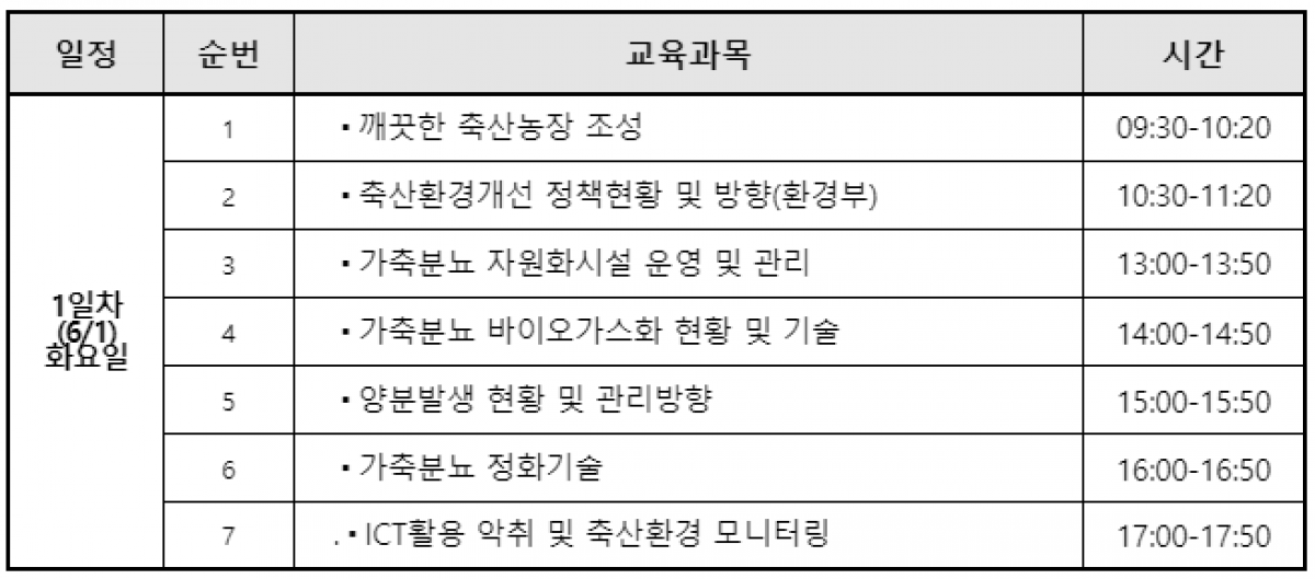 축산환경 전문컨설턴트 양성교육 기초과정 시간표