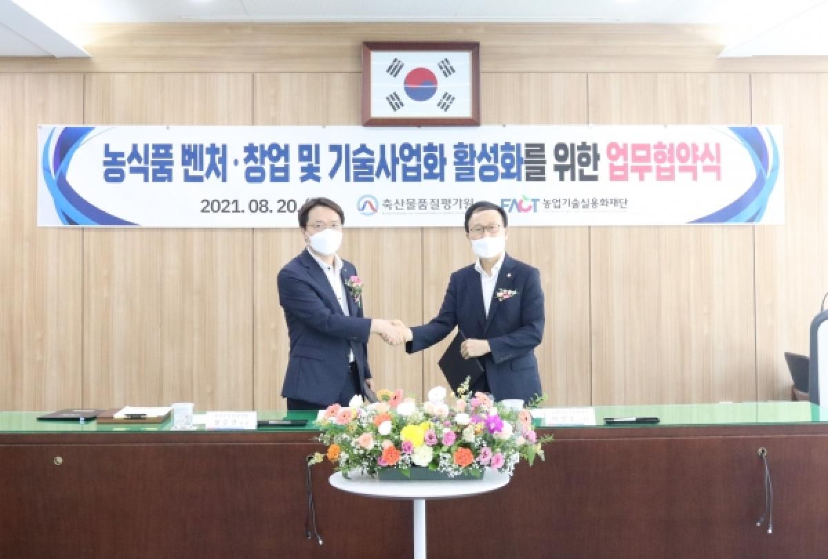 축산물품질평가원과 농업기술실용화재단이 농식품 중소벤처·창업 활성화를 위해 맞손 잡았다.