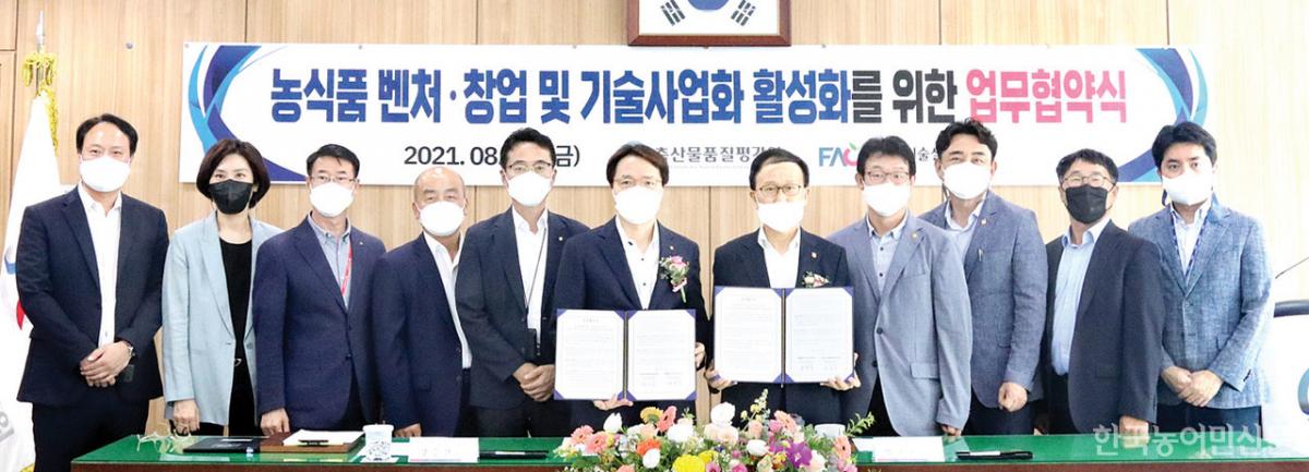 축산물품질평가원과 농업기술실용화재단이 농식품 벤처·창업 및 기술사업화 활성화를 위해 업무협약을 체결했다.