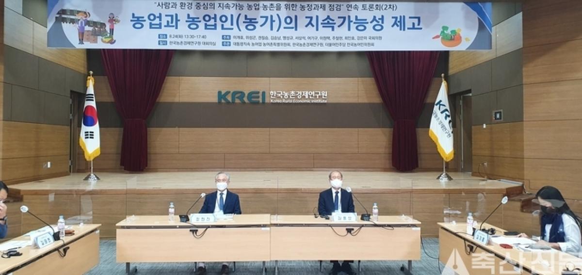 대통령 직속 농어업농어촌특별위원회(위원장 정현찬)가 지난 24일 한국농촌경제연구원 대회의실에서 농경연과 함께 농업과 농업인(농가)의 지속가능성 제고를 주제로 토론회를 개최했다.
