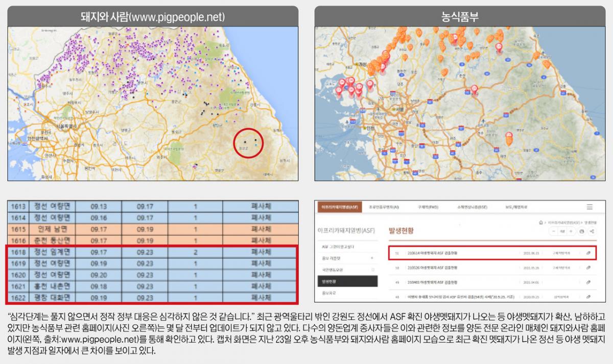 정 과장은 “(방역 대책을 완화시켜달라는 농가 요구와 관련해선) 농가 입장에서의 어려움을 모르는 바는 아니지만 주변에서 멧돼지 오염원들이 워낙 많기에 지금까지의 조치들은 계속해서 가져가야 한다. 그렇지 않으면 다른 양돈장으로 오염이 확산해 더 큰 어려움에 직면할 수 있다고 말했다.