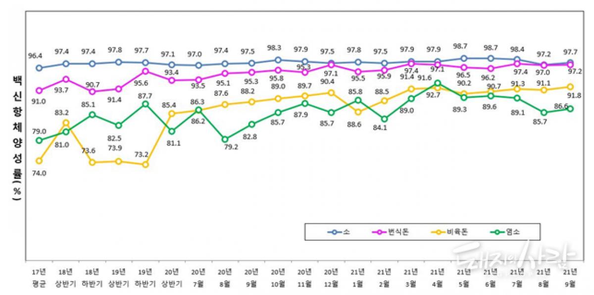 구제역 항체양성률 추이@검역본부
