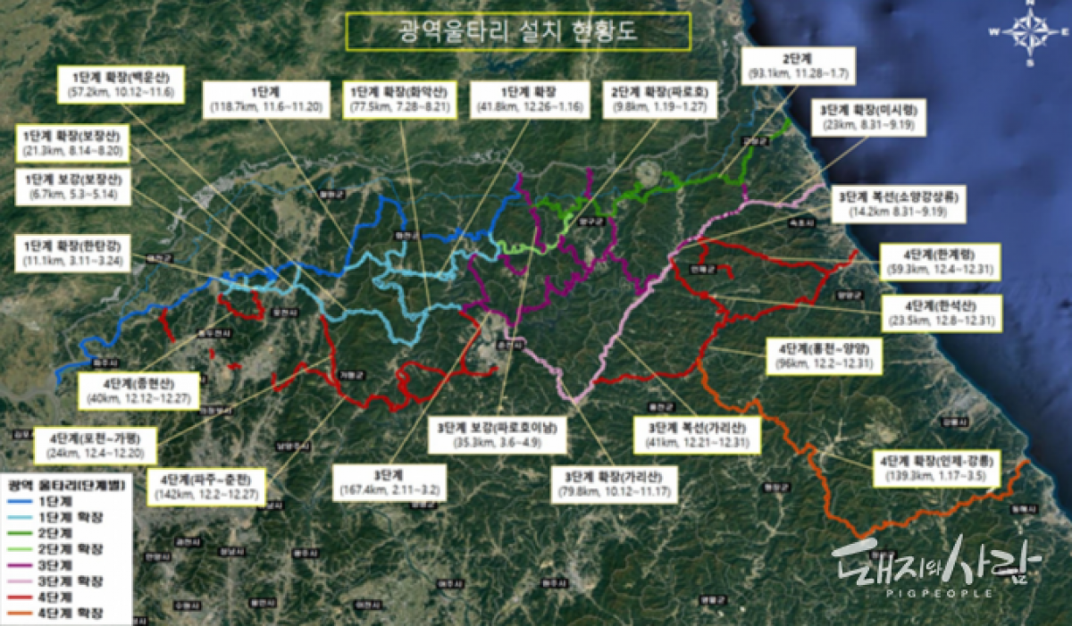 ASF 멧돼지 확산 차단 광역울타리(1단계~4단계)[환경부]
