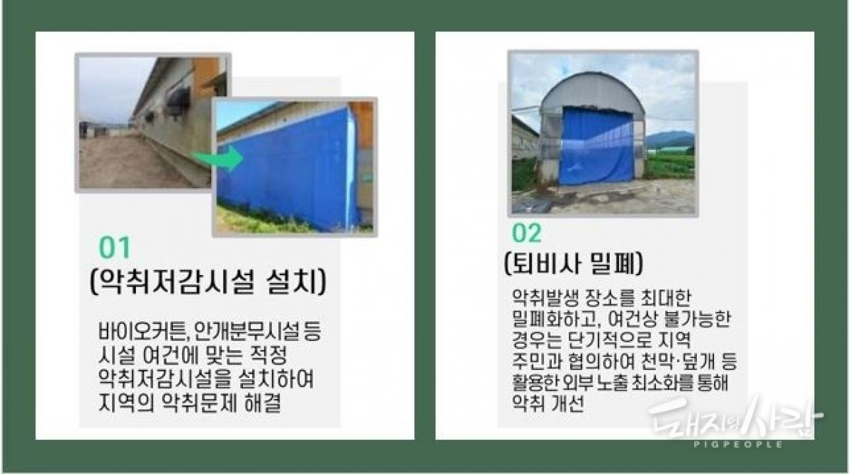 1. 강원 고성, 경북 상주 등 악취저감시설, 2. 경기 안성, 전남 당양 등 퇴비사 밀폐@축산환경관리원