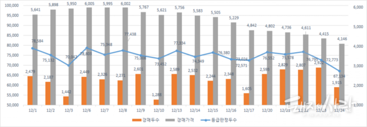 12월 돼지 경매두수 및 경매가격, 등급판정두수@축평원 자료 편집