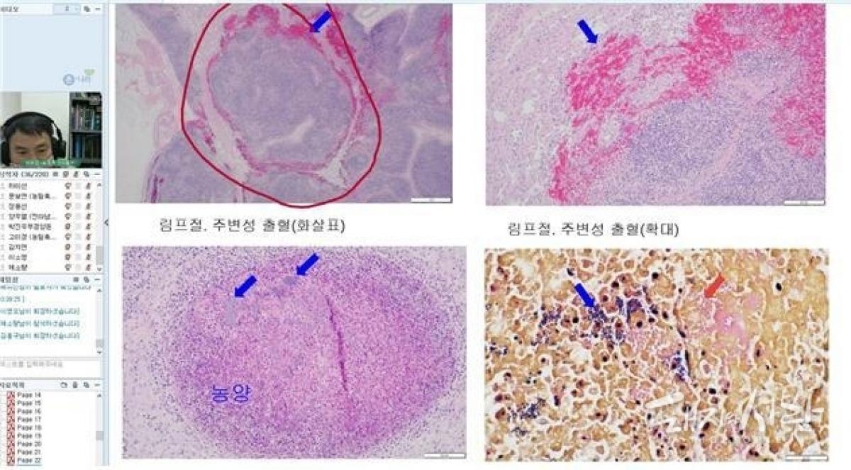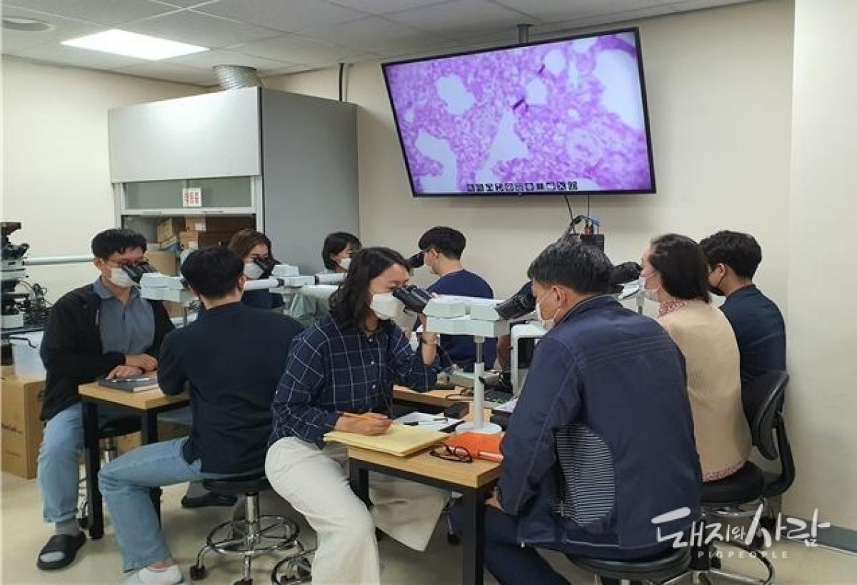 포인트 레슨은 같은 기간 동안 12개 질병진단 관련기관 50명이 참가한 가운데 교육생들이 희망하는 분야에 대한 집중 교육을 현장 교육 및 비대면 원격 영상회의로 실시되었습니다. 특히 최근 국내에서 발생하고 있는 ASF와 돼지 전신질병에 대한 여러 병변을 소개, 현장에서 진단을 내리는 데 도움이 될 수 있도록 하였습니다.
