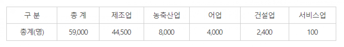 인력난을 겪고 있는 업종을 중심으로는 외국인근로자 고용허용인원 상향을 추진합니다. 대표적으로 영세 양계·양돈 농가에 외국인근로자 배정을 총 2명으로 확대할 계획입니다.