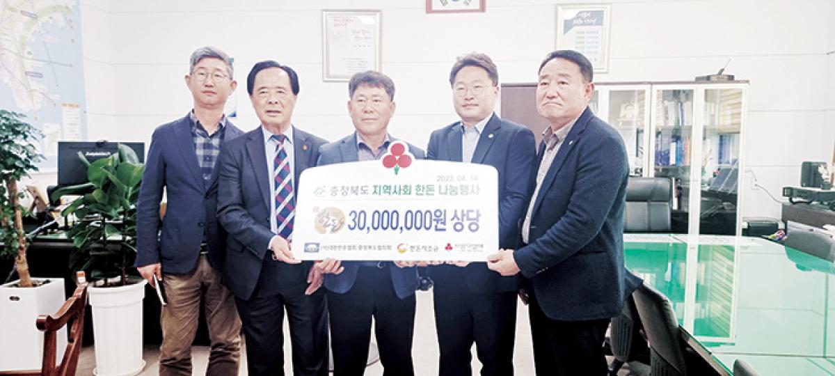 대한한돈협회 충북도협의회(회장 이민영)는 지난 14일 충북도 행정부지사 직무실에서 이우종 부지사에게 3천만원 상당의 한돈을 기탁했다.