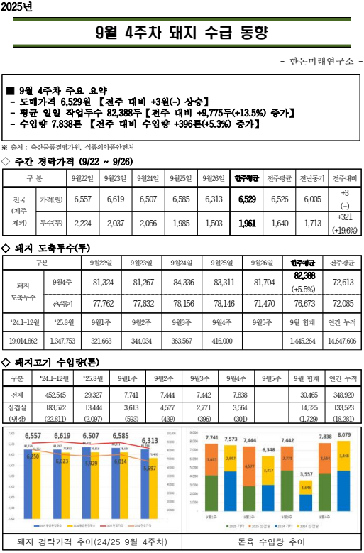25년 9월 4주차 돼지 수급 동향