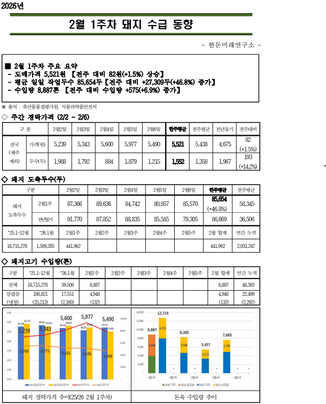 26년 2월 1주차 돼지 수급 동향