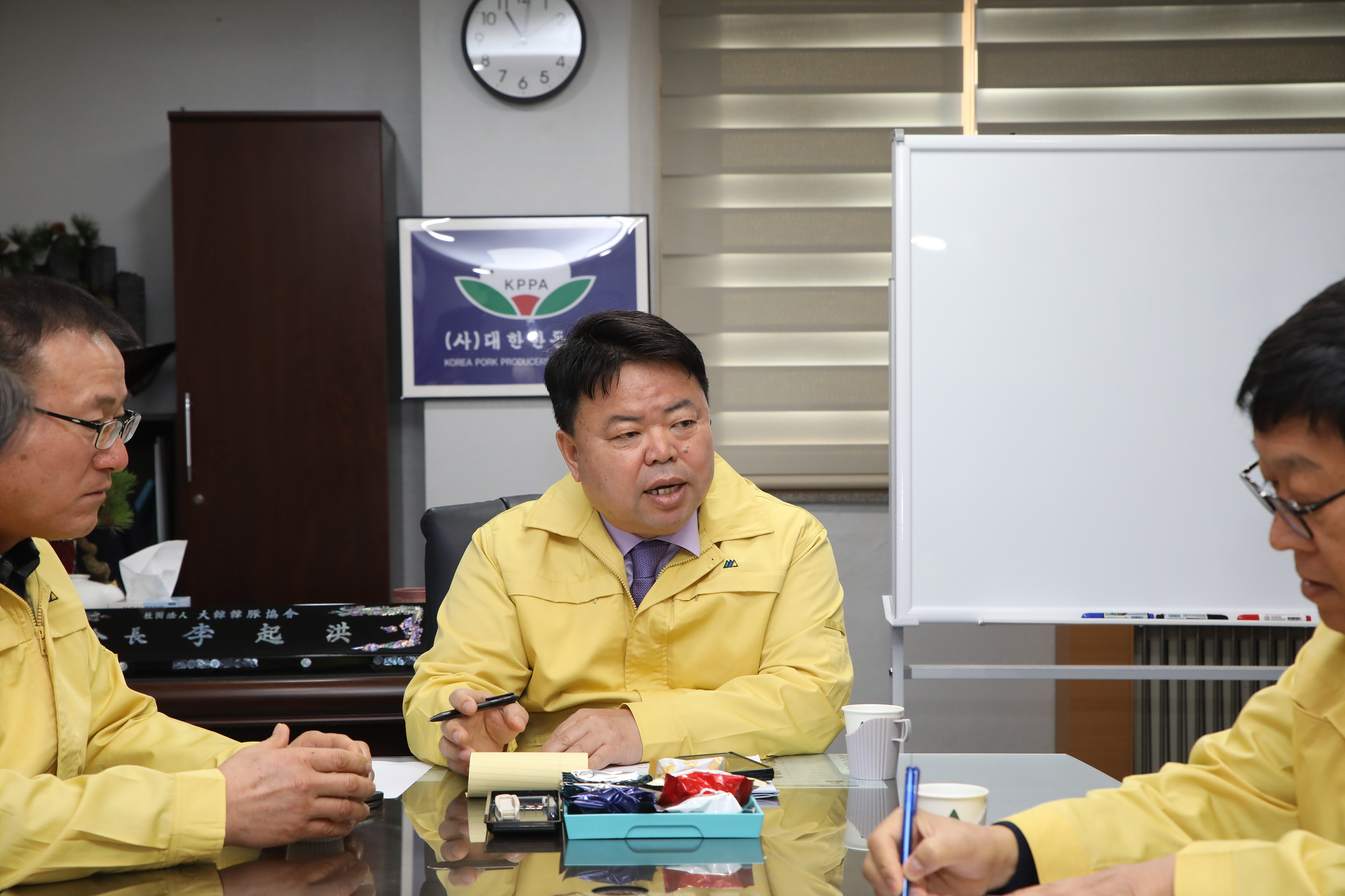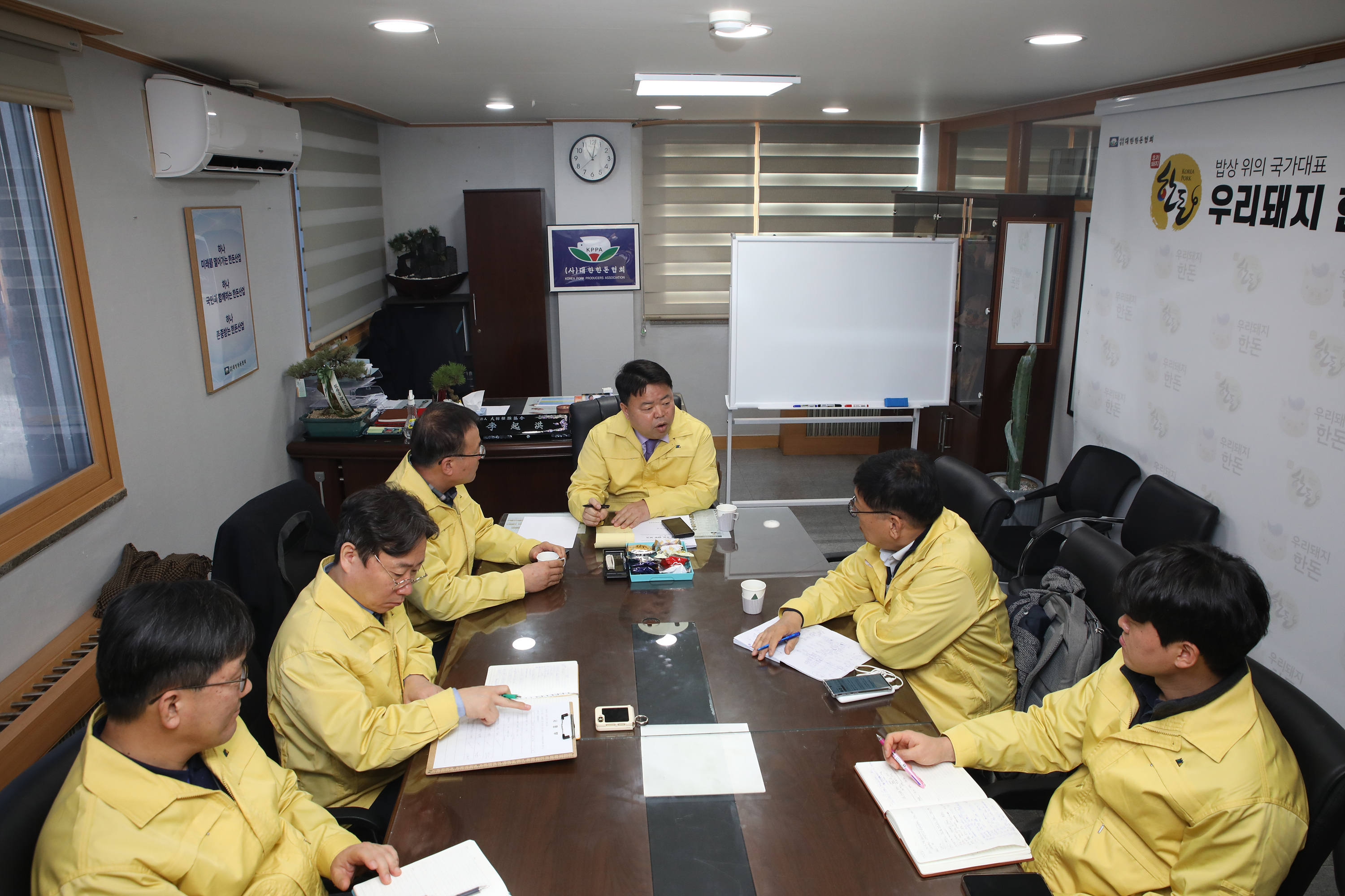 정현규 태국 콘캔대학교 교수를 초청해 최영길 수석부회장과 직원들이 참석한 가운데 ASF 대응 방향 점검 회의를 개최했다. 최근 ASF의 확산으로 전국적 긴장감이 높아진 가운데, 협회는 전문가 의견을 토대로 향후 대응 방향을 정립하고 현장 농가 지원 방안을 논의했다.