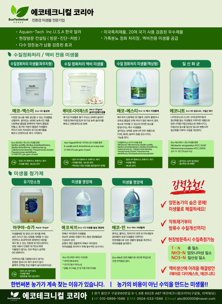 • 친환경 미생물 전문기업, 수질정화 처리, 액비 전용 미생물, 미생물 첨가제
