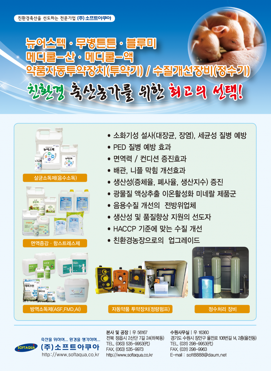 • 살균소독제, 면역증강·항스트레스제, 방역소독제, 약품자동투약장치, 정수처리장비