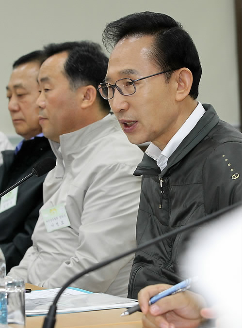 이명박 대통령이 지난 7일 오전 서울 서초구 양재동 농협 하나로클럽에서 유정복 농식품부 장관, 이병모 양돈협회장 등이 참석한 가운데 제82차 국민경제 대책회의를 주재하고 최근 물가 동향과 함께 양돈산업 현안에 대한 의견을 나눴다.
