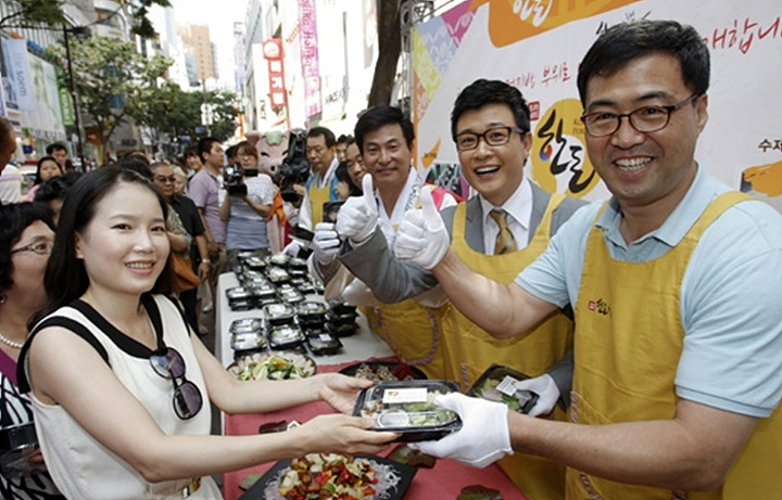 한돈자조금관리위원회(위원장 이병모)가 지난 9월 1일 명동 예술극장 앞에서 ‘한돈 역대 홍보대사와 함께 하는 한돈햄 시식행사’를 열었다. 이날 행사에는 역대 한돈 홍보대사인 이만기, 이한위 씨와 현 홍보대사인 김성주 씨가 참여해 한돈햄 시식팩을 일반인에게 전달했다.