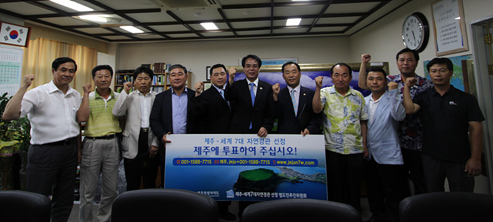 전국 양돈인들이 제주를 알리는 홍보활동을 벌이는 등 제주가 세계7대자연경관에 선정될 수 있도록 적극 나서기로 했다. 제주특별자치도(도지사 우근민)는 지난 9일 1일 오후 제주도청에서 ‘세계7대자연경관 제주선정 홍보대사 위촉식’을 열고 대한양돈협회 이병모 회장을 홍보대사로 위촉하고 양돈협회 산하 9개도협의회와 제주지역 4개 지부장을 홍보위원으로 위촉했다. 이날 김부일 제주도 환경 부지사는 이날 오후 제주도청에서 이병모 양돈협회장에게 ‘제주 세계7대자연경관 선정 홍보대사’ 위촉장을 수여하고, 고권진 제주도협의회장, 남제주지부 김정환 지부장, 서귀포지부 송상호 지부장, 제주지부 김성진 지부장, 제주북부지부 김태하 지부장에게도 홍보위원 위촉장을 전달했다. 김부일 제주도 환경경제부지사는 "'세계 7대 자연경관' 선정 최종 후보지 28곳에 제주도가 올랐다"며 "일본 후지산, 북한 백두산, 중국 양쯔강은 28개 최종 후보지에서 탈락, 한국 제주도가 동북아시아를 대표하는 자연 경관이 됐다"며 "이번 기회를 살려야 한다"고 강조했다. 이에 이병모 회장은 “제주가 세계7대자연경관에 선정된다면 한국의 랜드마크로 국가브랜드를 높이는데 도움이 될 것”이라고 밝히고, “이번 양돈인들의 참여로 투표 참여에 대한 범국민적 분위기 확산과 함께 투표율 상승이 한층 탄력을 받을 것으로 기대한다며, 전 양돈인들도 홍보에 적극 나설 것”이라고 화답했다. 양돈협회 제주도협의회를 비롯해 산하 지부와 양돈인들은 이미 자발적으로 다양한 제주도 홍보 활동을 펼치고 있다. 제주도협의회 고권진 회장은 “양돈인들이 그동안 농장경영에만 집중했던 것과 달리 이제 이웃과 함께하고 국가의 품격을 높이는 일에 앞장서 나갈 것이며 그 일환으로 제주도가 세계 7대 자연 경관에 선정될 수 있도록 양돈인들이 앞장서서 힘쓰고 있다”고 밝혔다. 세계 7대 자연경관은 세계 7대 불가사의를 선정한 스위스의 비영리 재단 ‘뉴세븐원더스’가 주관하는 것으로 오는 11월 10일까지 전화, 문자(001-1588-7715) 및 인터넷 투표를 통해 세계에서 가장 아름다운 7곳을 선정한다. 세계 7대 자연경관을 뽑기 위한 전 세계인 투표는 지난 2007년 7월부터 진행중이며, 제주도는 1~3차 심사를 통해 최종 후보지 28곳으로 선정됐으며 갈라파고스섬(에콰도르), 그랜드캐년(미국), 아마존(브라질), 사해(이스라엘), 몰디브섬(몰디브) 등이 제주도와 함께 치열한 경쟁을 펼치고 있다. |