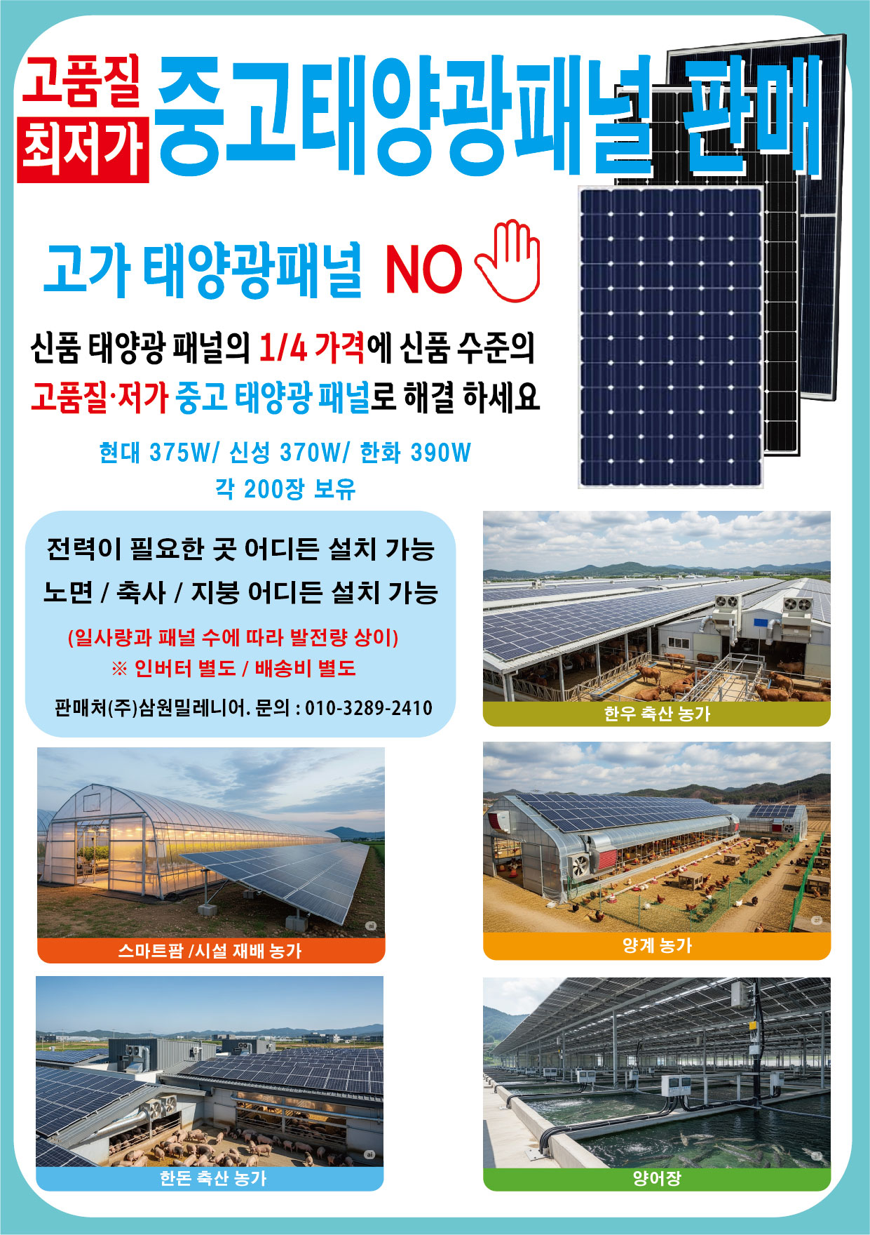 [중고시장] 저렴한 중고 태양광 패널로 폭염 전력난 해소에 도움을 드립니다.