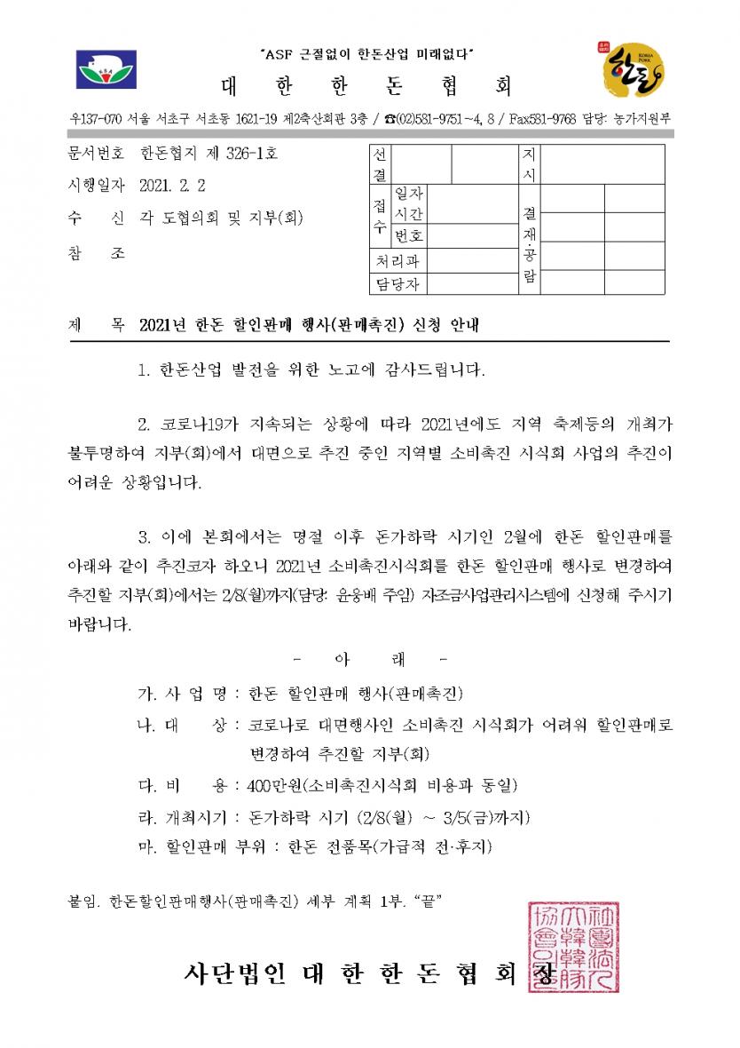 첨부파일 다운로드 326-1(시행) 2021년 한돈 할인판매 행사(판매촉진) 신청 안내.pdf
