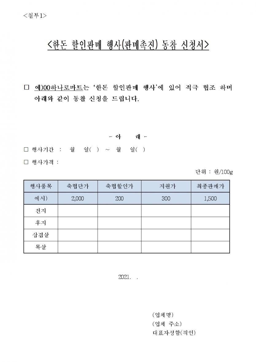 2021년 한돈 할인판매 행사(판매촉진) 신청 안내