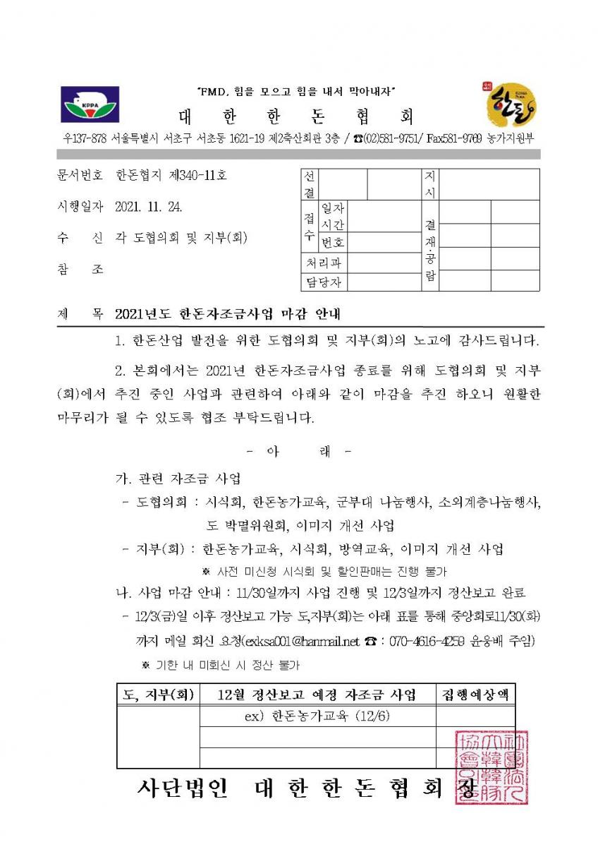 첨부파일 다운로드 340-11(시행) 2021년도 한돈자조금사업 마감 안내.hwp