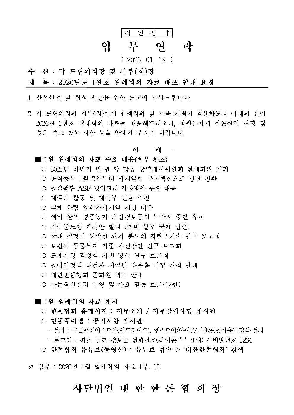[업무연락] 2026년도 1월호 월례회의 자료 배포 안내