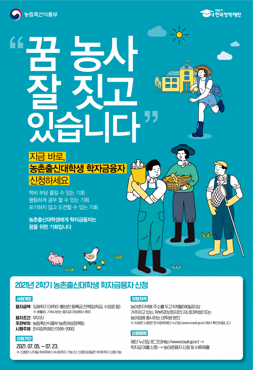 [농식품부] 2021년 2학기 농식품부 학자금 대출 신청하세요!