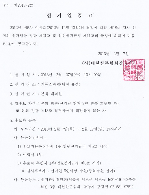 [공고] 본회 제18대 감사 선거의 선거일 공고