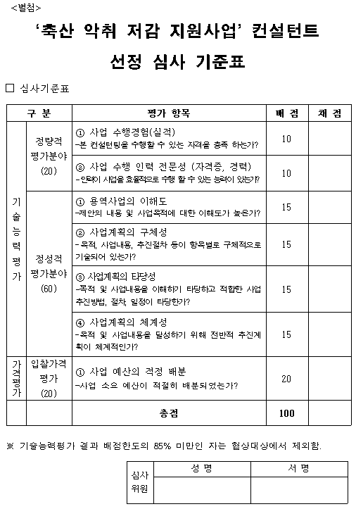 첨부파일 다운로드 311-9(사업제안서)축산 악취 저감 지원 사업 컨설턴트 선정 입찰 공고.hwp