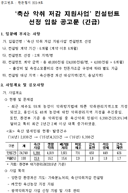 첨부파일 다운로드 311-9(공고문)축산 악취 저감 지원 사업 컨설턴트 선정 입찰 공고.pdf