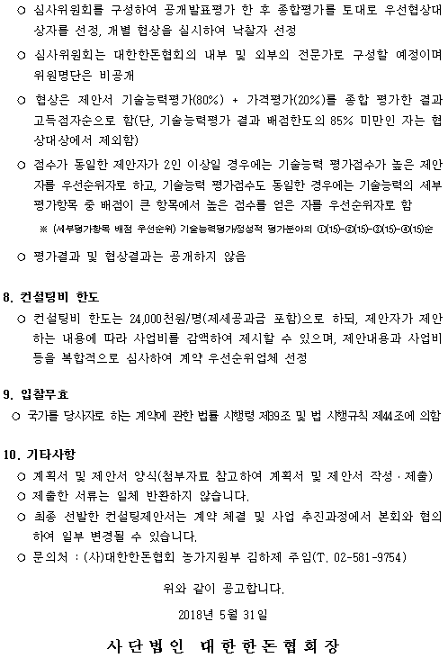 이전게시물 [공고]한돈혁신센터 건축시공 업체 선정 입찰 공고(긴급)