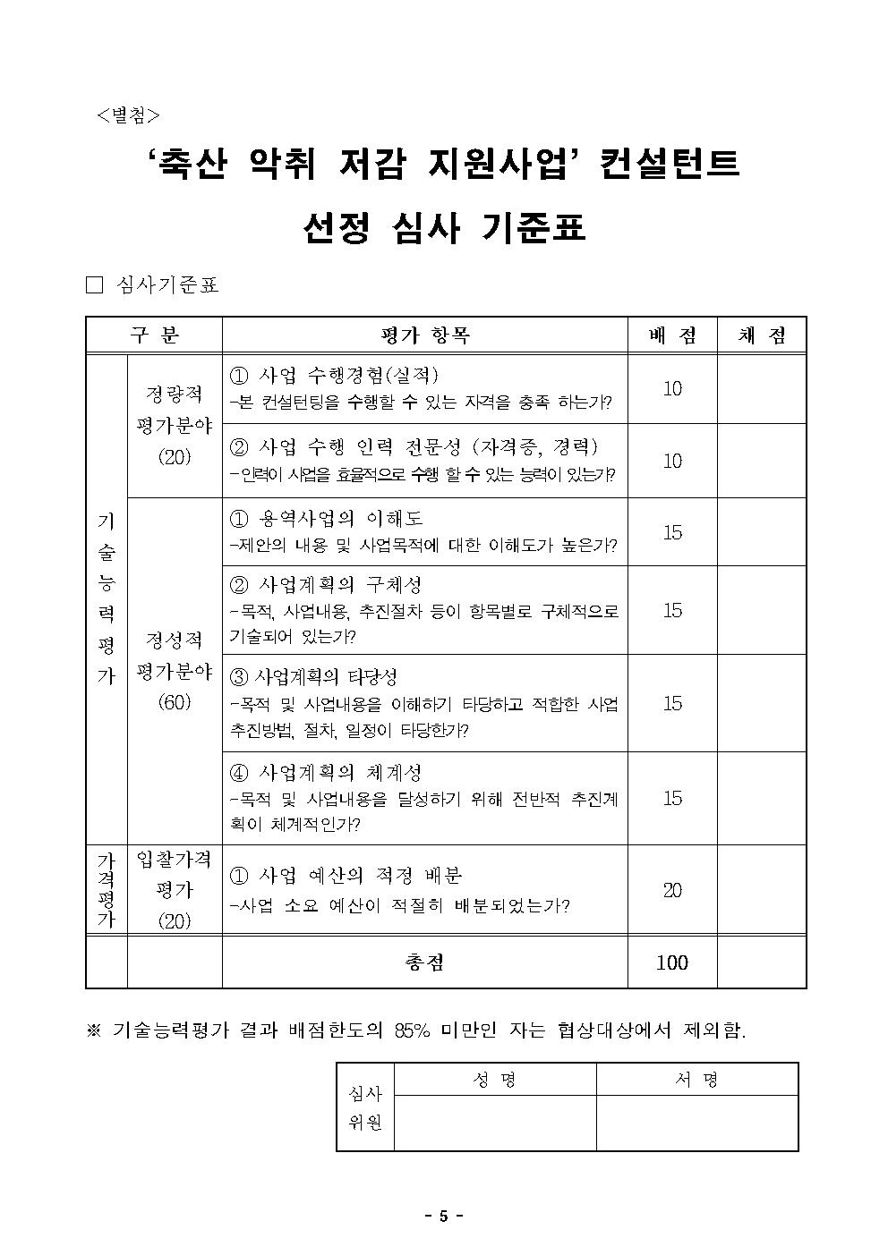 첨부파일 다운로드 311-03 첨부 (사업제안서 및 추천서)축산 악취 저감 지원 사업 컨설턴트 선정 입찰 공고.hwp