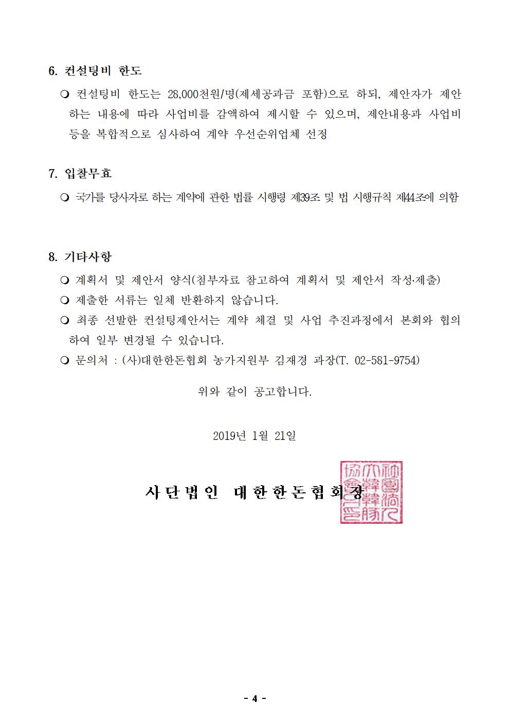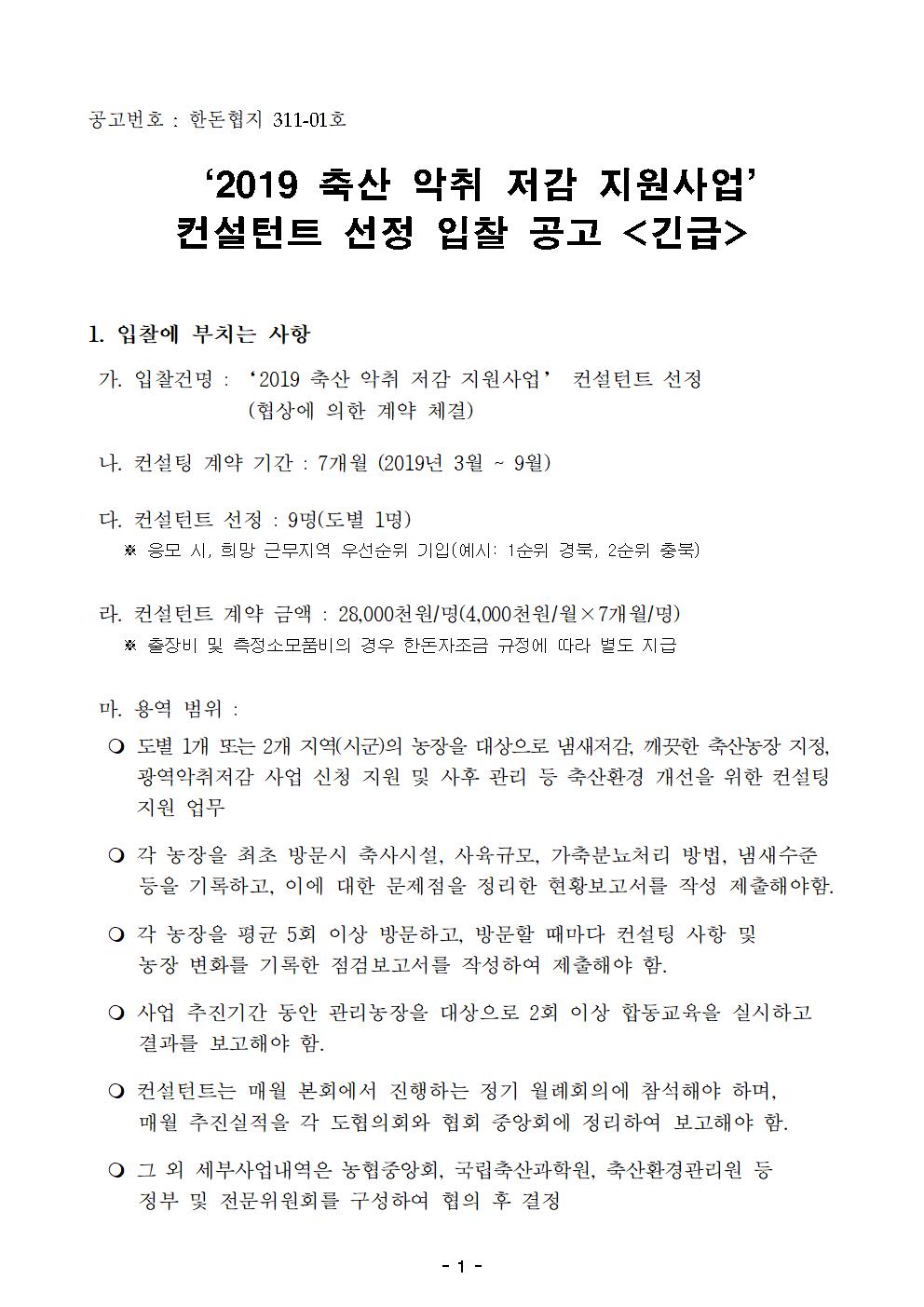 <긴급> 2019 축산악취 저감지원사업 컨설턴트 선정 입찰공고