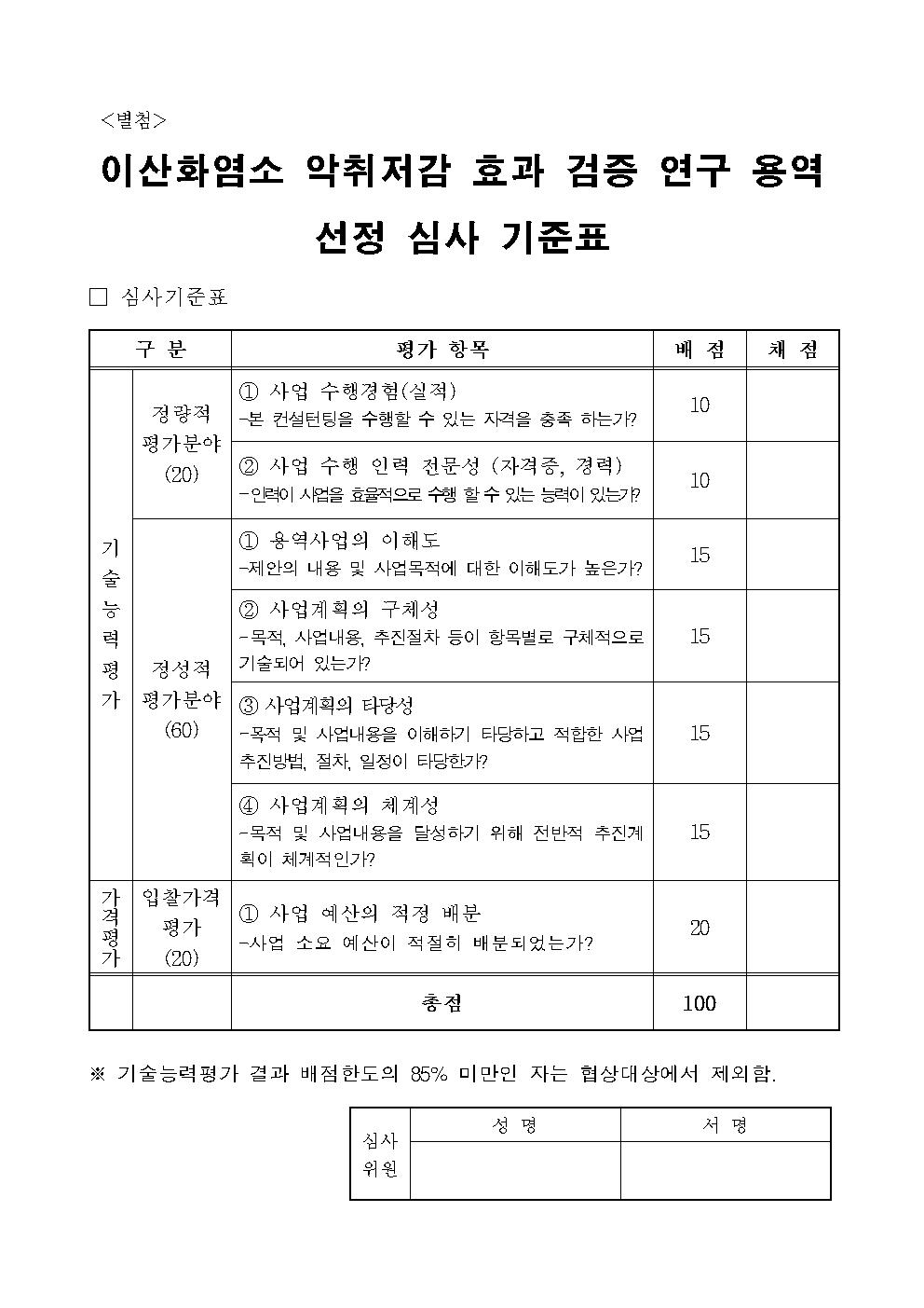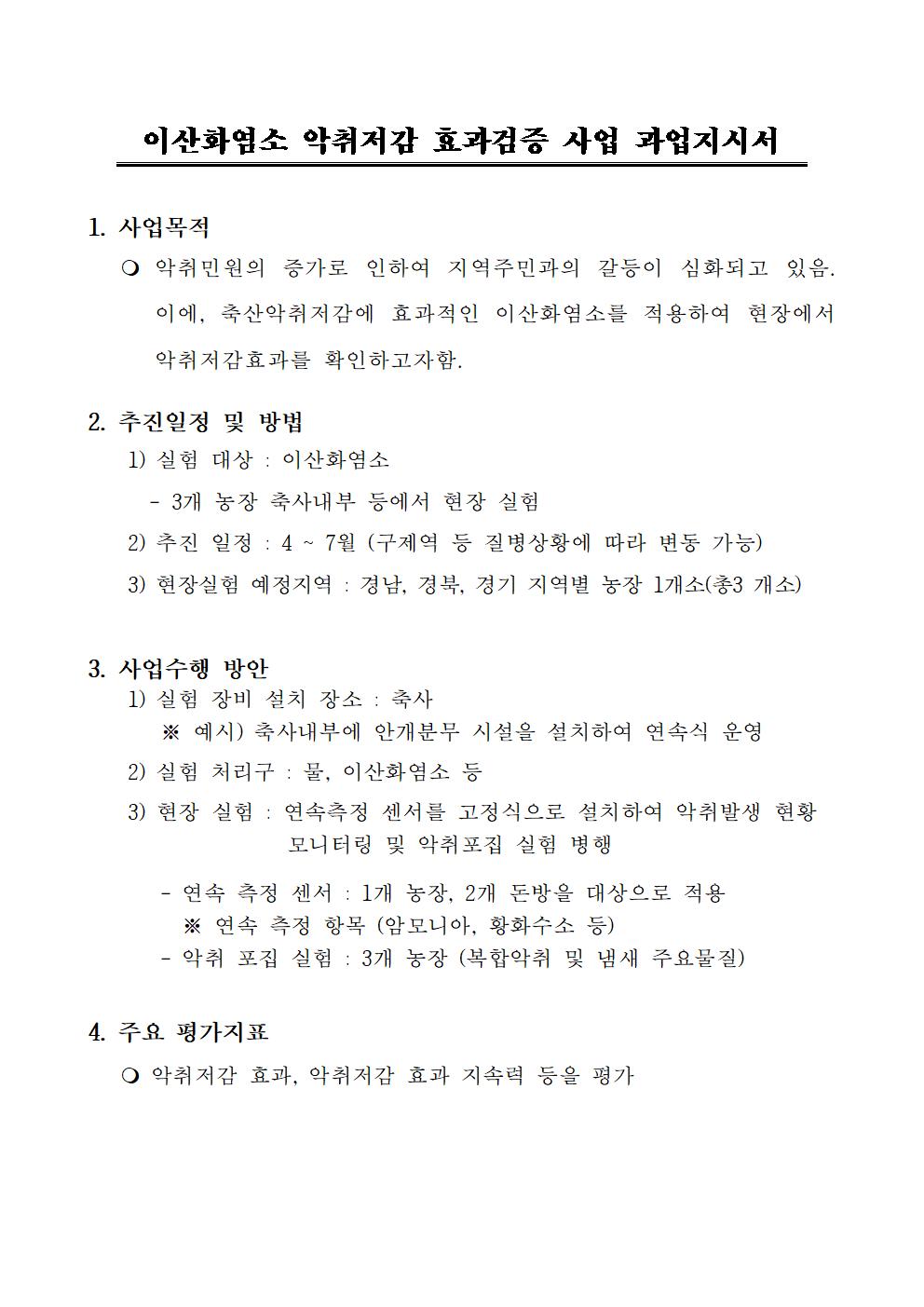 첨부파일 다운로드 311-06(과업지시서) 이산화염소수 악취저감 효과검증 연구용역 추진.hwp