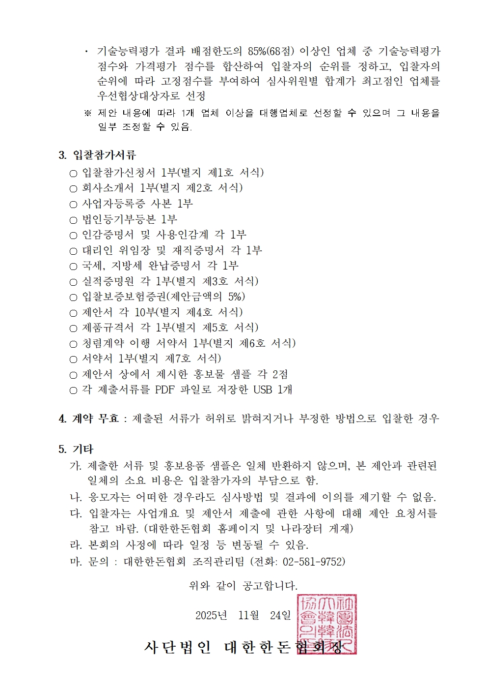 다음게시물 [공고] 자조금사업관리시스템 서버 임대관리 및 유지보수 용역업체 선정 입찰공고(긴급)