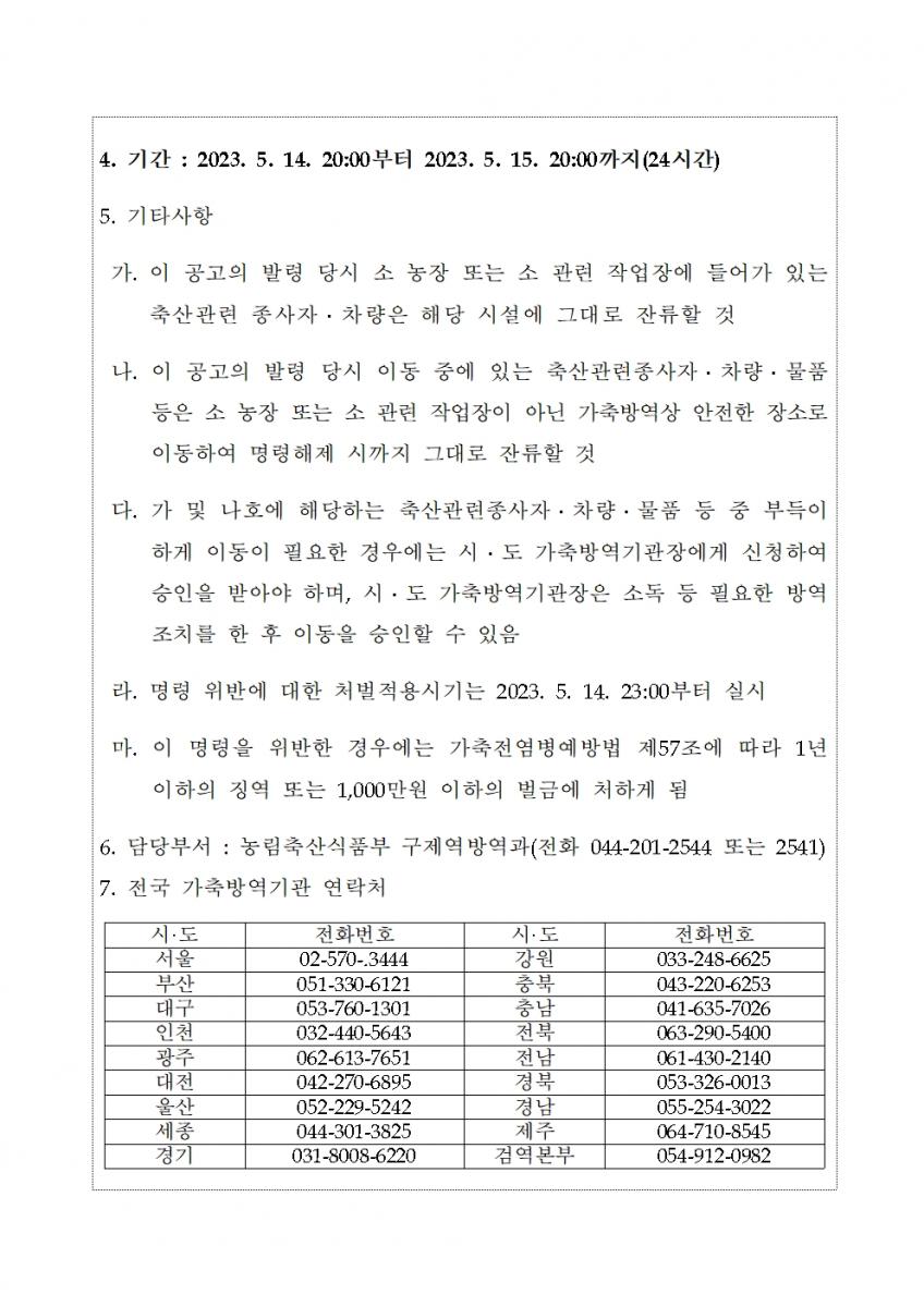증평 한우농장 구제역 확진...5/15 20시까지 충청지역 스탠드스틸