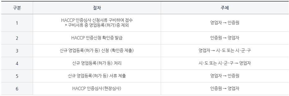2. HACCP 의무적용 업체 신규 영업등록(허가, 신규 품목제조보고 포함) 시 절차