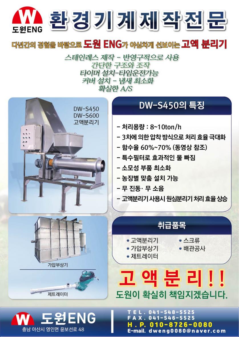 성능 좋은 고액분리기 소개 합니다( 동영상 필요하시면 보내드립니다. 전화주세요)