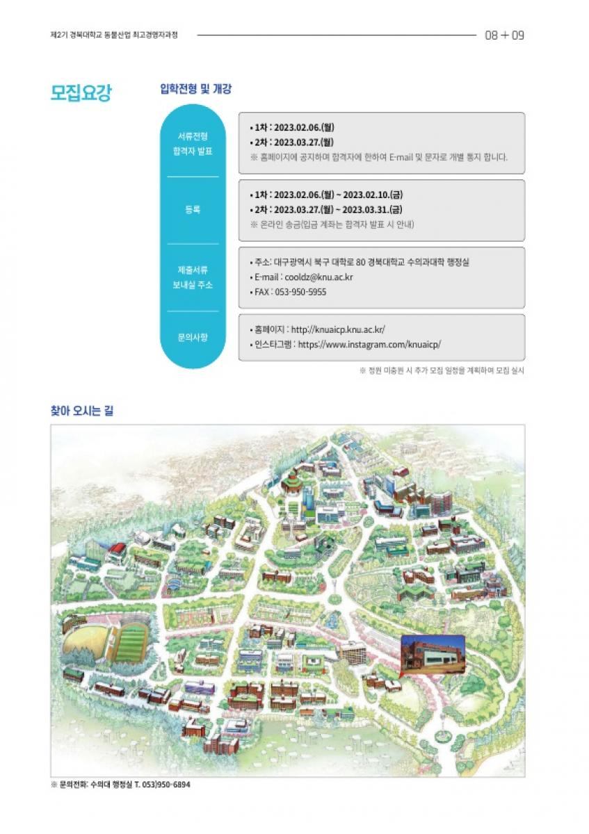 안녕하세요 경북대학교 동물산업최고경영자과정 사무국에서 안내드립니다.