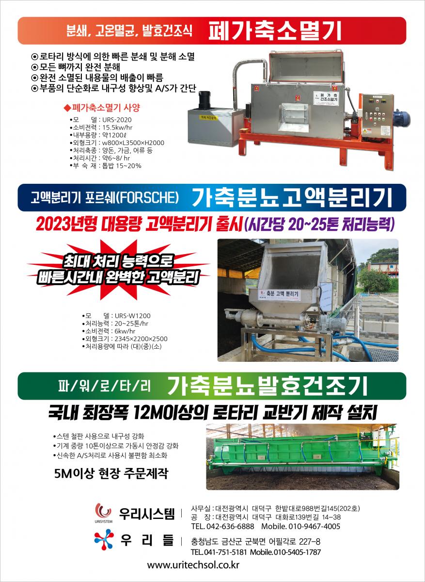 우리시스템 2023년형 대용량 고액분리기 & 폐사축처리기