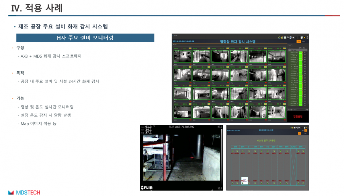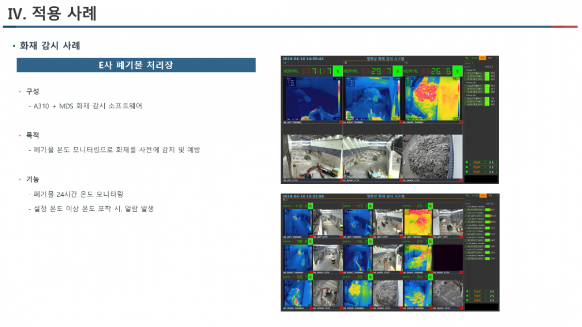 이에 열화상 카메라를 통해 단락이 일어나는 부분을 24시간 감시하고 전기를 차단시켜 화재를 예방할 수 있습니다.