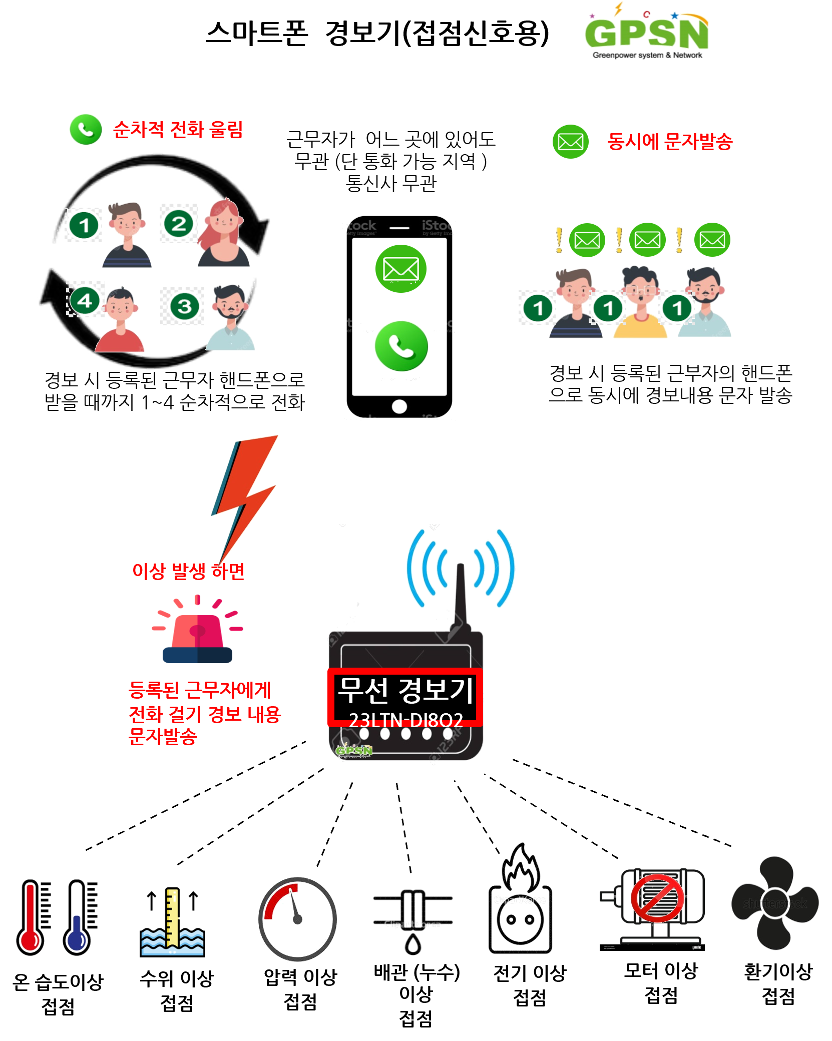 경보 상황이  발생하면 스마트폰으로 전화와 문자가 전송 됩니다