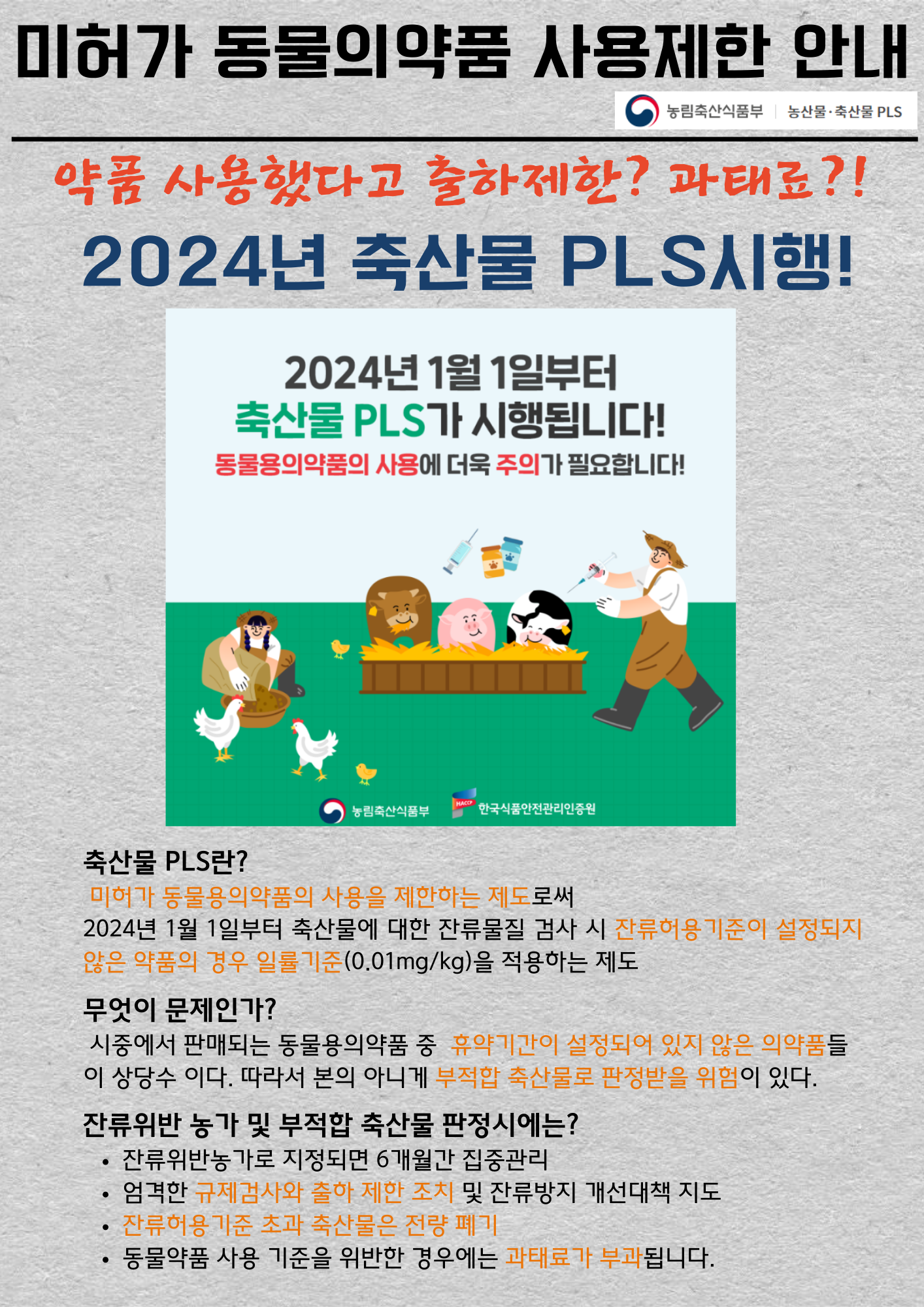 [2024년 축산물 PLS시행] 약품사용했다고 과태료, 출하제한?
