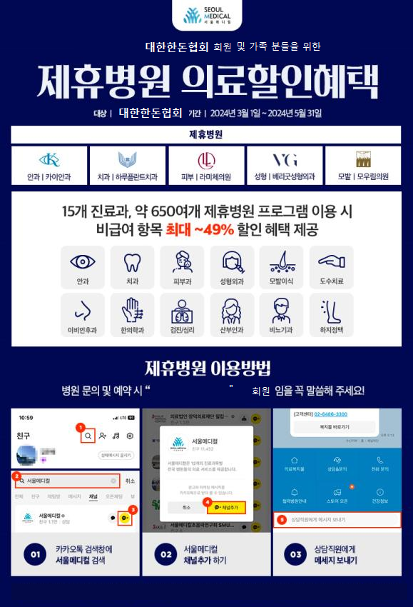 대한한돈협회 임직원 및 가족분들을 위한 할인★스마일라식,라섹,임플란트,눈코성형,모발,피부,건강검진,비뇨&산부★