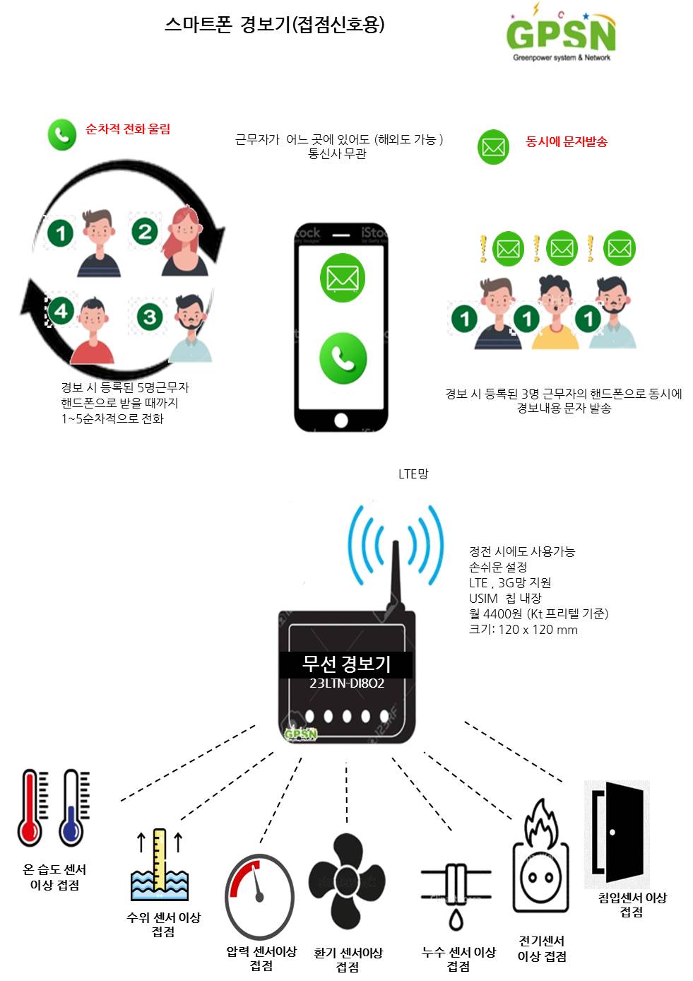경보 상황이  발생하면 스마트폰으로 전화와 문자가 전송 됩니다