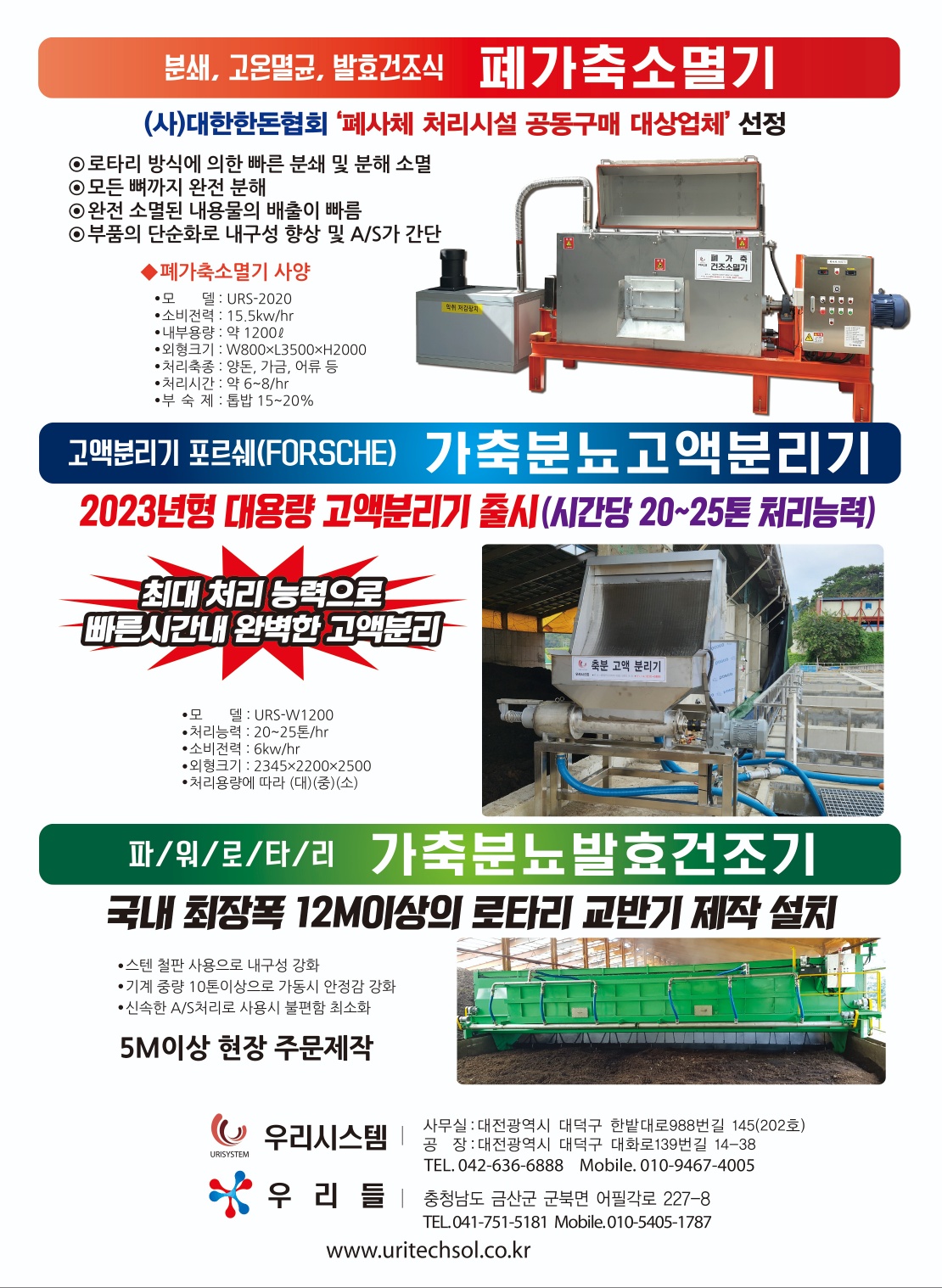 우리시스템 2024년형 대용량 고액분리기 & 폐사축처리기