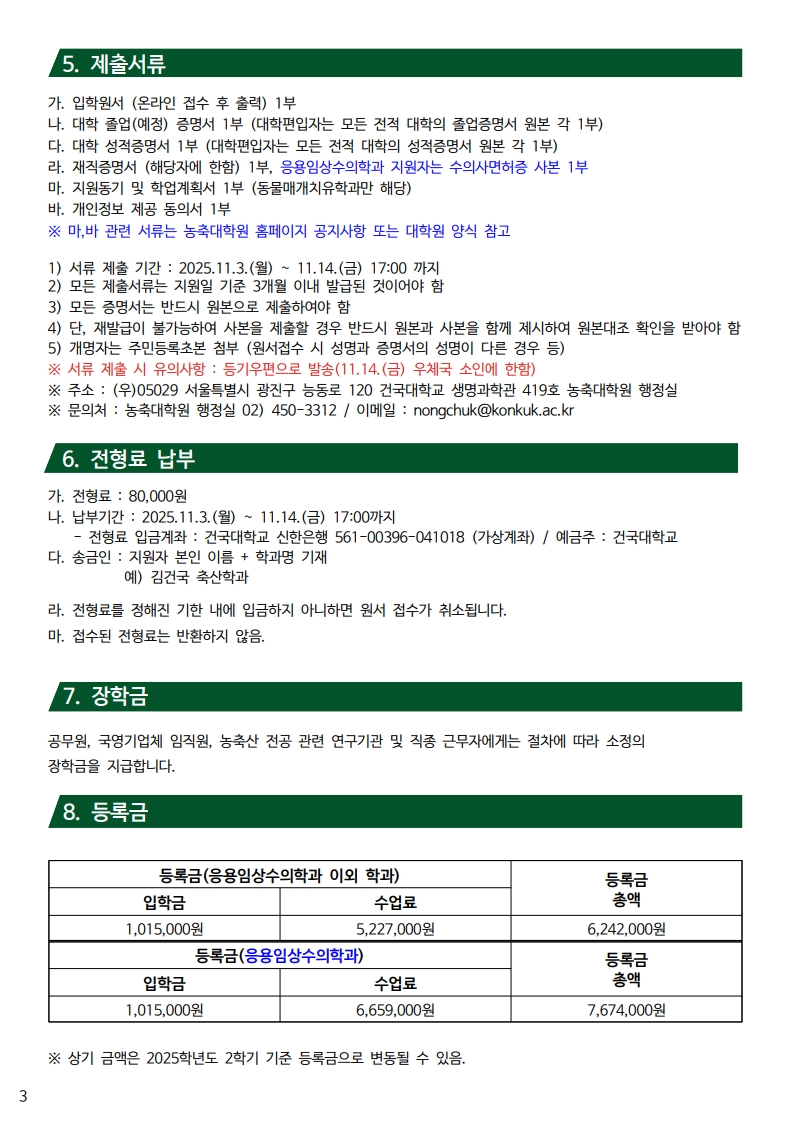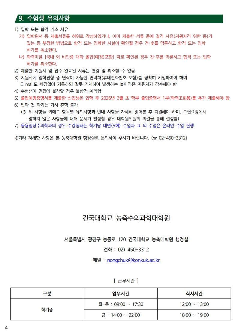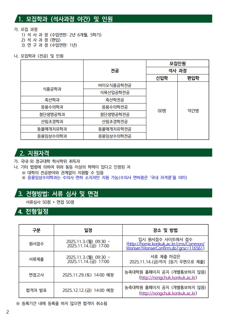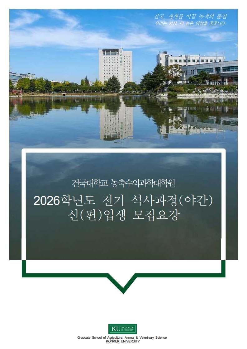 [공고] 건국대학교 농축수의과학대학원 2026학년도 전기 석사과정(야간) 신(편)입생 모집