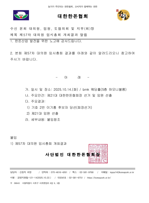 첨부파일 다운로드 121-14(시행) 본회 제57차 대의원 임시총회 개최결과 알림.pdf