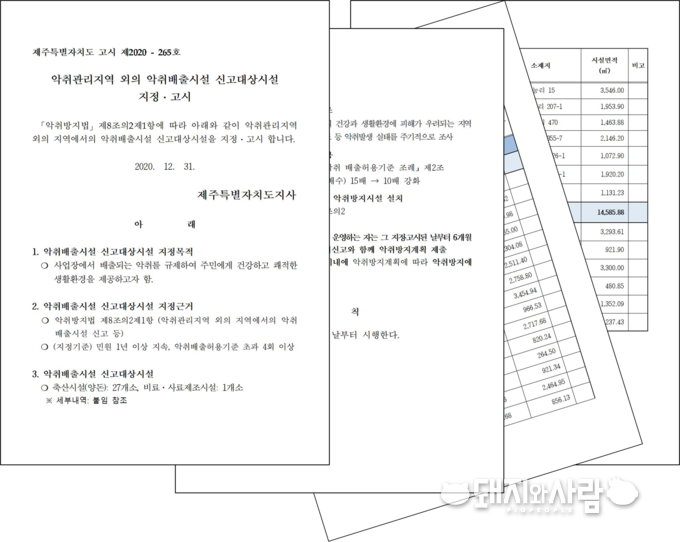 제주도는 지난 14일부터 29일까지 '행정예고'를 통해 30(양돈시설 29, 부산물비료제조시설 1)에 대한 악취배출시설 신고대상시설 지정계획'을 알리고 이해관계인 등에 대한 의견을 수렴하였습니다.
