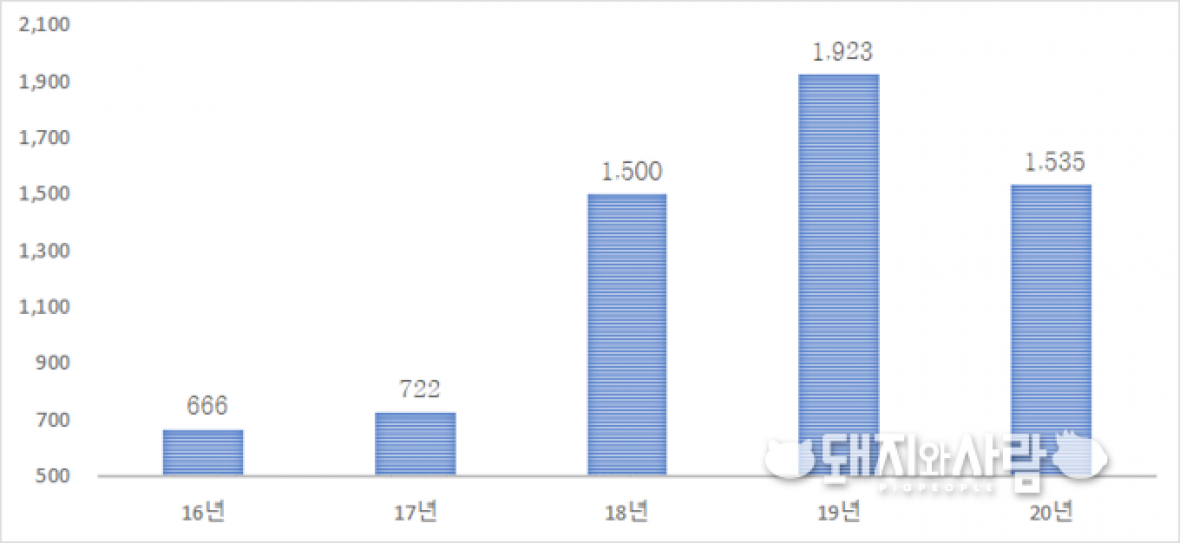2020년 축산악취 민원 1,535건으로 전년 대비 388(20.1%) 감소....농장 대상 행정처분 및 자구노력 유도 결과